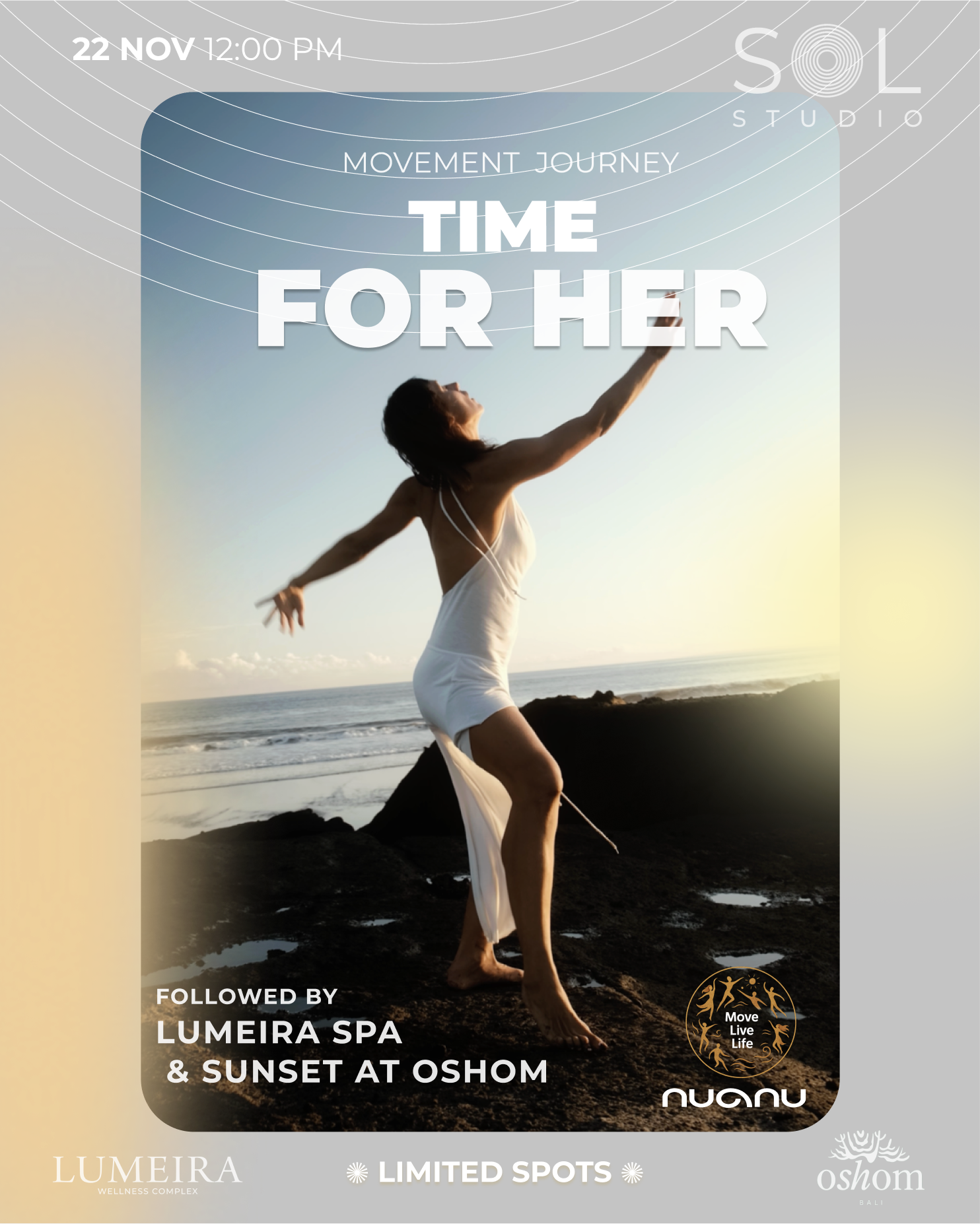 And later, we’ll gather at Oshom for a sunset by the ocean 🌅 — celebrating life, connection, and ourselves.